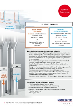 •	 Cleaning time reduced by 50% during disembarkation/embarkation days